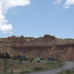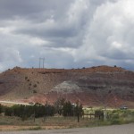 We got a late start leaving Santa Fe. Breaking camp took longer than expected so it wasn’t before too long that the dreaded thunderstorm clouds started forming again. Yes, I know I sound like a broken record but afternoon thunderstorms can really take the fun out of riding. Based on weather forecasts it looked like the chance of rain was reduced further north.No such luck. It rained off and on during the last two hours of our ride. We even got hail – that was a first for both of us on the motorcycle. I pulled over onto the shoulder when it started but when I heard loud thunder directly above us I figured this might not be the best place to stay ;-). The hail was very localized, about one mile down the road it stopped just as suddenly as it had started. Freaky.