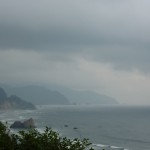 Lovely. Low clouds and drizzle, a whopping 59F (15 C) outside great us in the morning. The ‘high’ for the day was 61F in Tillamook. Not the best riding weather. Maybe that’s why we got a late start this morning, continuing down U.S. 101. RV’s (towing cars) are evil ;-). Too many on the road, too much traffic.