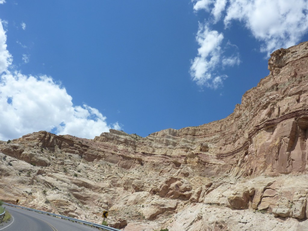 I tried to capture the incredible scenery that we were riding through on highway 24 today even though it involved a 30 mile section of I-70 which didn’t make Diane very happy, especially with a speed limit of 80mph. Thankfully, traffic on the interstate was light and we were off of it before long. Avoiding the interstate all together would have been a two day detour since Canyonlands National Park extends quite a way south with no easy east-west connection. No epic hikes today, just beautiful landscape.