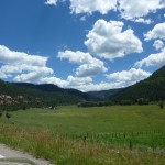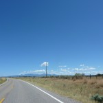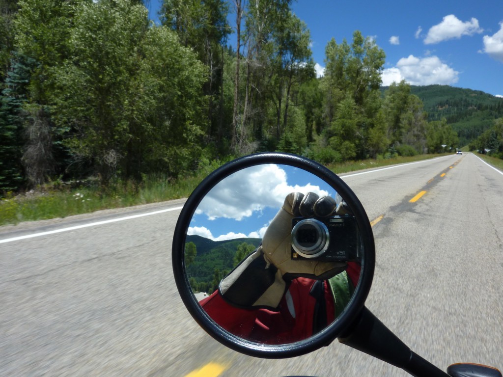 The ride through northern New Mexico and into Colorado led us through gently rolling hills of sage brush and later farm land until we got to Delores, CO when we joined up with CO145 which runs along a river into the mountains towards Telluride. As we climb in altitude we can see the mountains and the clear demarkation of the tree line. The air cools to the point where we have to close the Ā air flow zippers on our jackets to keep warm. It’s a very scenic and not too dramatic ride though there are a couple of tight turns and drops. The drop offs though are not immediately to the the right or left of the lane but rather buffered by a large shoulder and often times extra space which makes them a lot more tolerable for Diane.