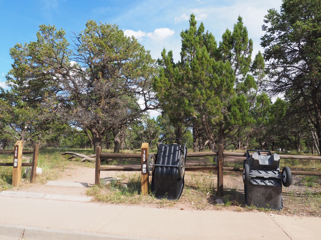 By the time we get to Telluride the worst is over as we start the final leg of the day, joining CO62 in Placerville into Ridgway, CO. We stop to pick up a six pack of beer š before heading toĀ theĀ campground and stop for the night at Ridgway State Park just up the road on US550. We lucked out and got the last available camping spot for the night. The campground is scenic, sitting on top of a plateau with great views around – perhaps that explains the rather stiff camping fee of $32 for the night ($18 to camp and $7 per motorcycle to enter the park). Still cheaper than a hotel (not to mention nicer) but it does seem a little steep for some dirt to pitch a tent ;-). At least they provide wheelbarrows to cart your gear from the parking lot to your campsite.
