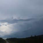The further south we rode the darker the sky became. A quick stop to put back on the layer of clothing we had taken off in Ft. Nelson and we headed into the rain. It was intense with thunder and even a few streaks of lightening in the distance but, thankfully, relatively short. With the rain behind us we stopped for gas in Buckinghorse River, waiting our turn at the pump. And we waited and waited….probably a good 30-40 minutes until it was our turn. All the time we were anxiously watching the weather we had just ridden through head our way again. After that momentus wait it turned out there was another gas stop just a few kilometers down the road – very unusual and why it’s recommended not to pass up fuel stops once your tank is half empty.
